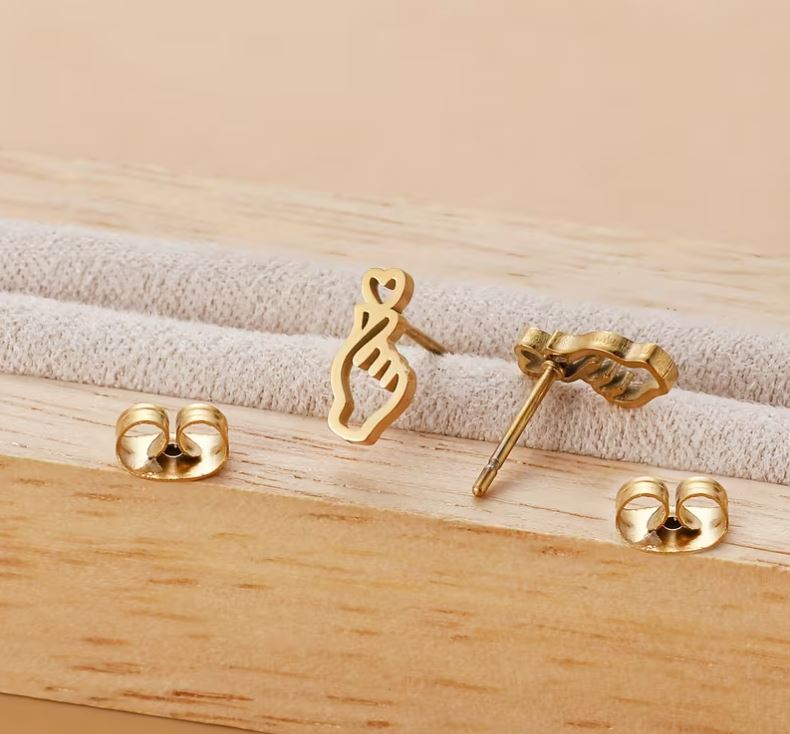 Stainless Steel Hypoallergenic Hand-in-Heart Earrings, Elegant Style for Daily Wear Jewelry, Elegant Heart Design, Hypoallergenic Earring